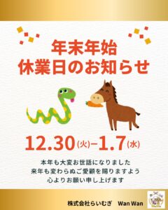 本日は年末年始のお休みのお知らせです。