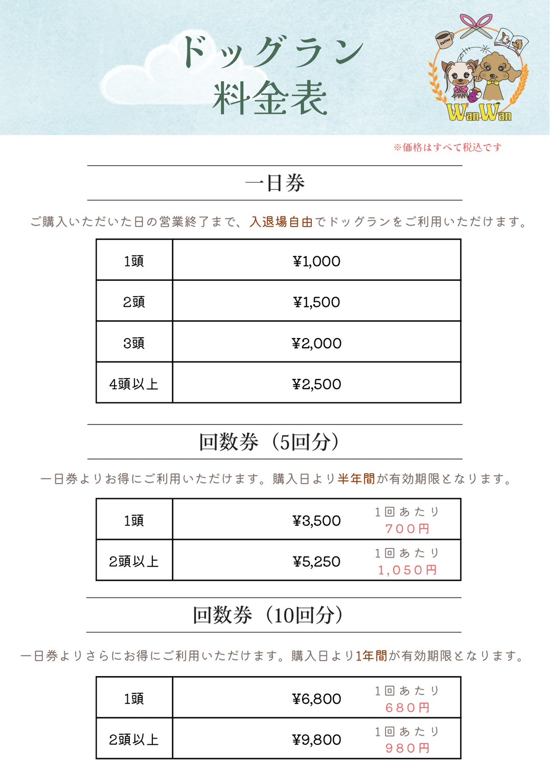 月に一度のWan wanの日(毎月11日)はドッグランを無料にします!